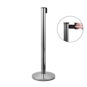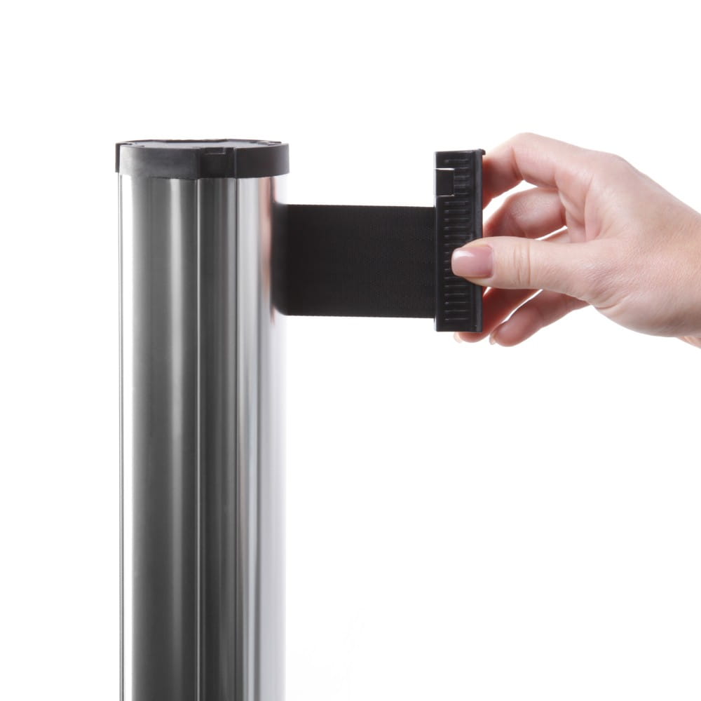 270 cm Retractable Belt Post J-EXTBE - Chrome with Black Belt - Divider Post for Hotel with Retractable Belt for Hotel, Restaurant, VIP Area