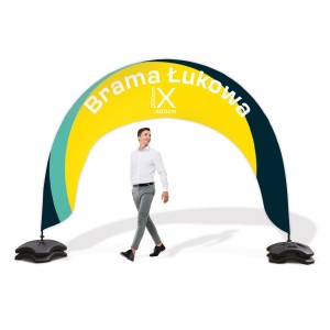 The outdoor arch gate is a flagship system designed for outdoor events, sports competitions, or any other type of outdoor gatherings. It is ideal as a highlight marking the entrance to a site or as a finish line for races. Thanks to customized printing and its large dimensions, the advertising message on the print will be clearly visible—even from a great distance.