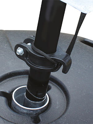 The heavy bases filled with up to 26 liters of water, provided in two pieces in the kit, ensure maximum system stability and prevent it from tipping over.