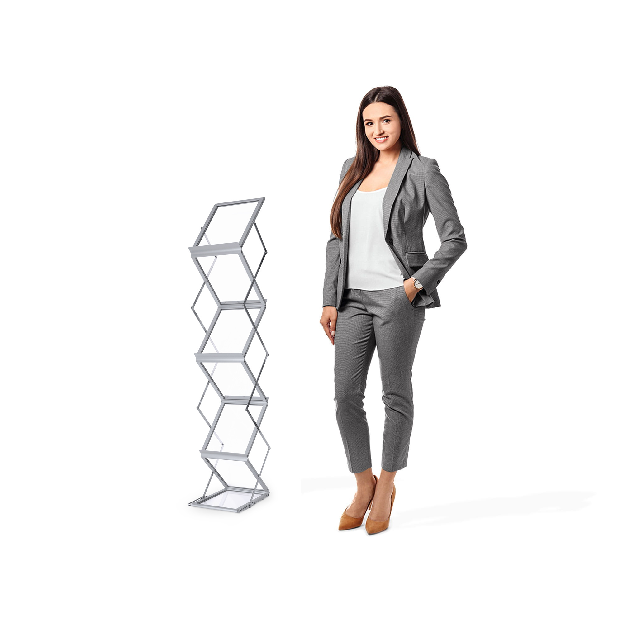 Unique design allows the presentation of leaflets on both sides of the display, doubling the exposure opportunities and attracting the attention of potential customers from different directions.