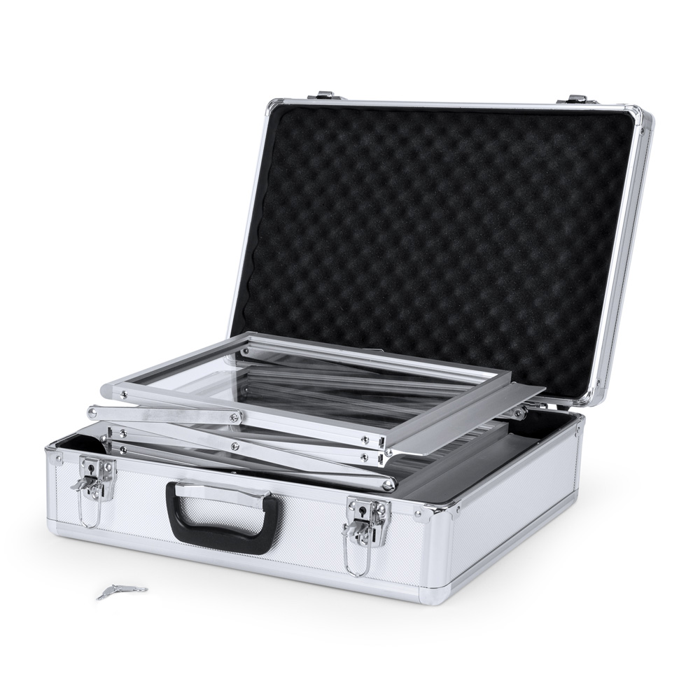 Our double-sided leaflet display stand with portable carry case is the ideal solution for those who value mobility and the effectiveness of a system designed for presenting promotional materials.