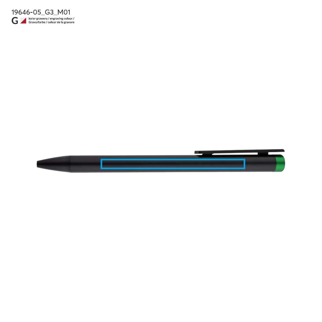 ALI is not just a pen, it is a true work of art that combines functionality and aesthetics. Its unique design with a black metal body and elegant black finishes creates a perfect backdrop for personal engravings. Thanks to innovative marking technology, the ALI pen allows engraving in a color matching the pen tip, making each piece unique. Additionally, the possibility of engraving in white aluminum opens the door to even greater creativity, allowing the creation of exceptional and personalized gifts or souvenirs.