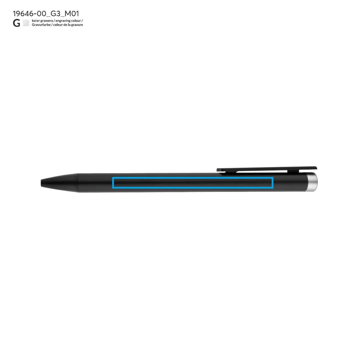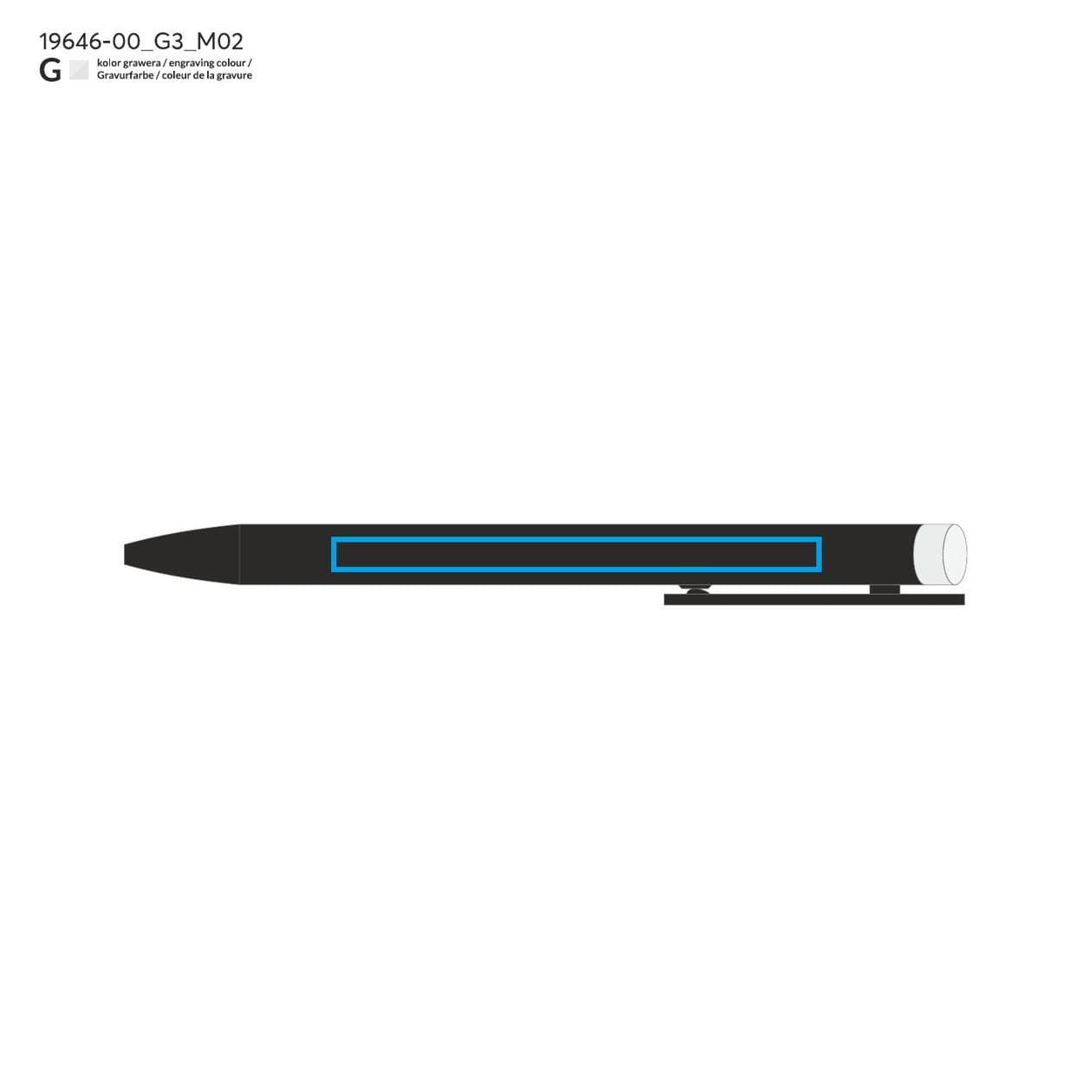 ALI is a unique pen that combines elegance, functionality, and modern design. Its unique construction allows for color marking that perfectly matches the pen tip. This enables customization according to personal preferences, making each piece unique. Additionally, ALI surprises with the possibility of engraving in two colors. Besides the color matching the pen tip, you can also choose classic white, which contrasts beautifully with the black metal pen body.