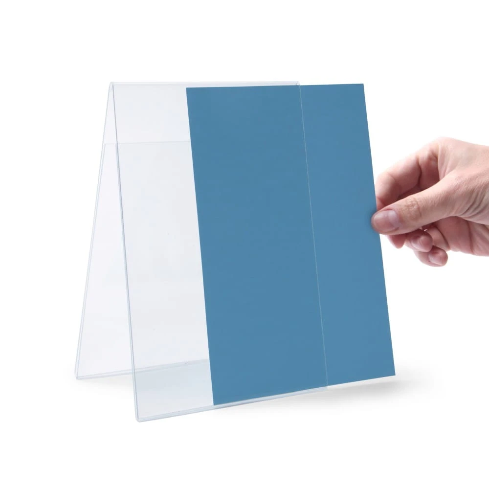 made of acrylic glass -shaped rackThe stand can be placed on the countertop or table, and the content is placed in it by inserting into a pocket.It is great for displaying posters, leaflets and other promotional or advertising materials.