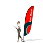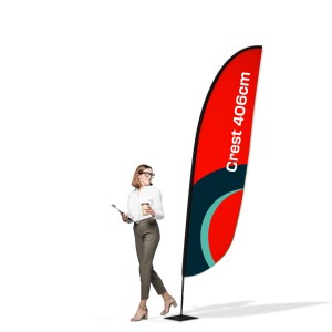 We recommend the Advertising Flag Winder 4.06m Crest. Crest - one of the four winder shapes offered by Retio (among: rectangle, feather, quill, crest), resembles a bird feather in appearance, which makes it spectacularly harmonize with the wind, especially at such a large size (4.06m).