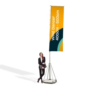 The Wind Dancer type advertising flag is the best solution if you want your advertisement to be visible from afar. The telescopic pole of the flag extends from 4 to 5 m in height (depending on the chosen system).