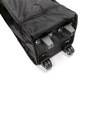 When folded, the tent fits into a portable transport bag with wheels. The set includes a set of pegs and a rope.
