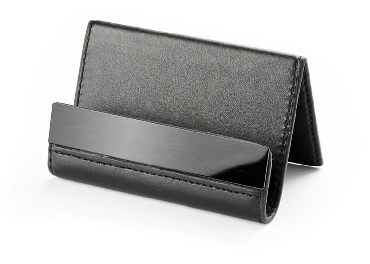 Universal desk stand - it will work as a phone stand, tablet and business cards.It will accommodate about 30 standard business cards.The black aluminum plate gives you the possibility of efficient engraving.