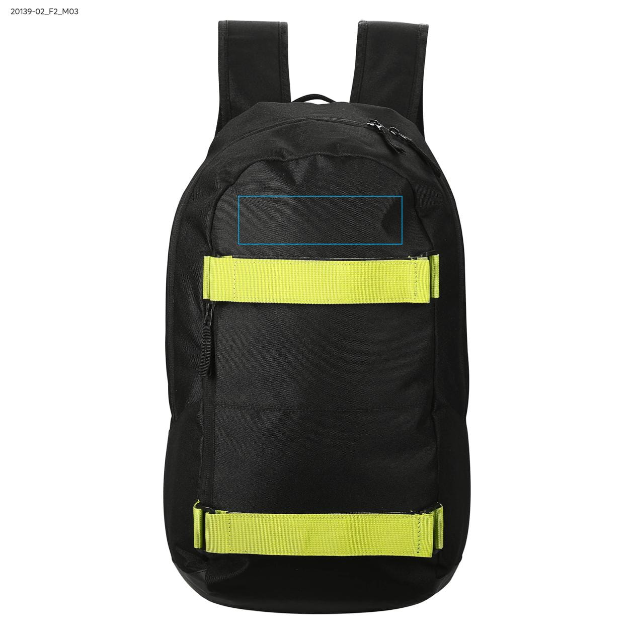 The interior of the backpack is designed with maximum functionality in mind. The main compartment, secured with two sturdy zippers, ensures the safety of stored items. An additional divider and a mesh snack pocket with a zipper allow excellent organization inside, so you don’t have to worry about where to store small items. Additionally, the backpack is equipped with two bright-colored straps that securely hold a skateboard, making it an ideal option for street sports enthusiasts.