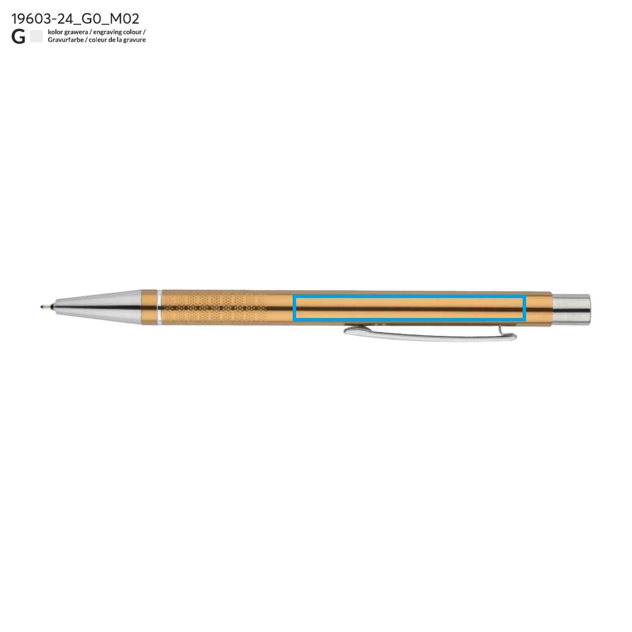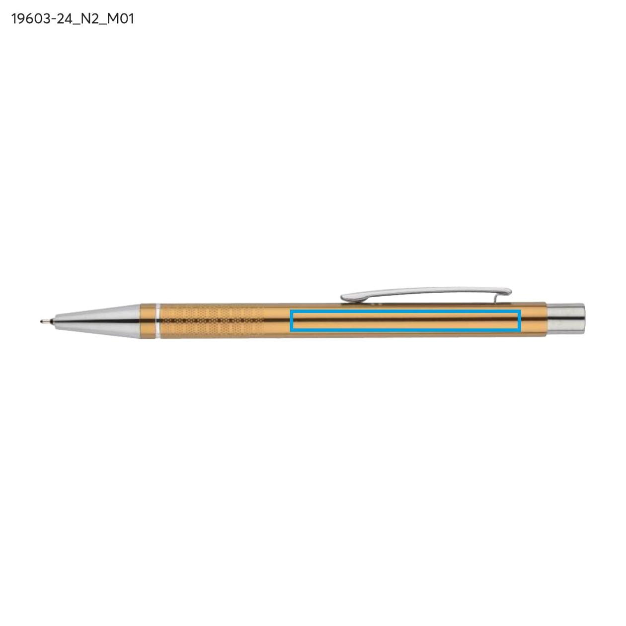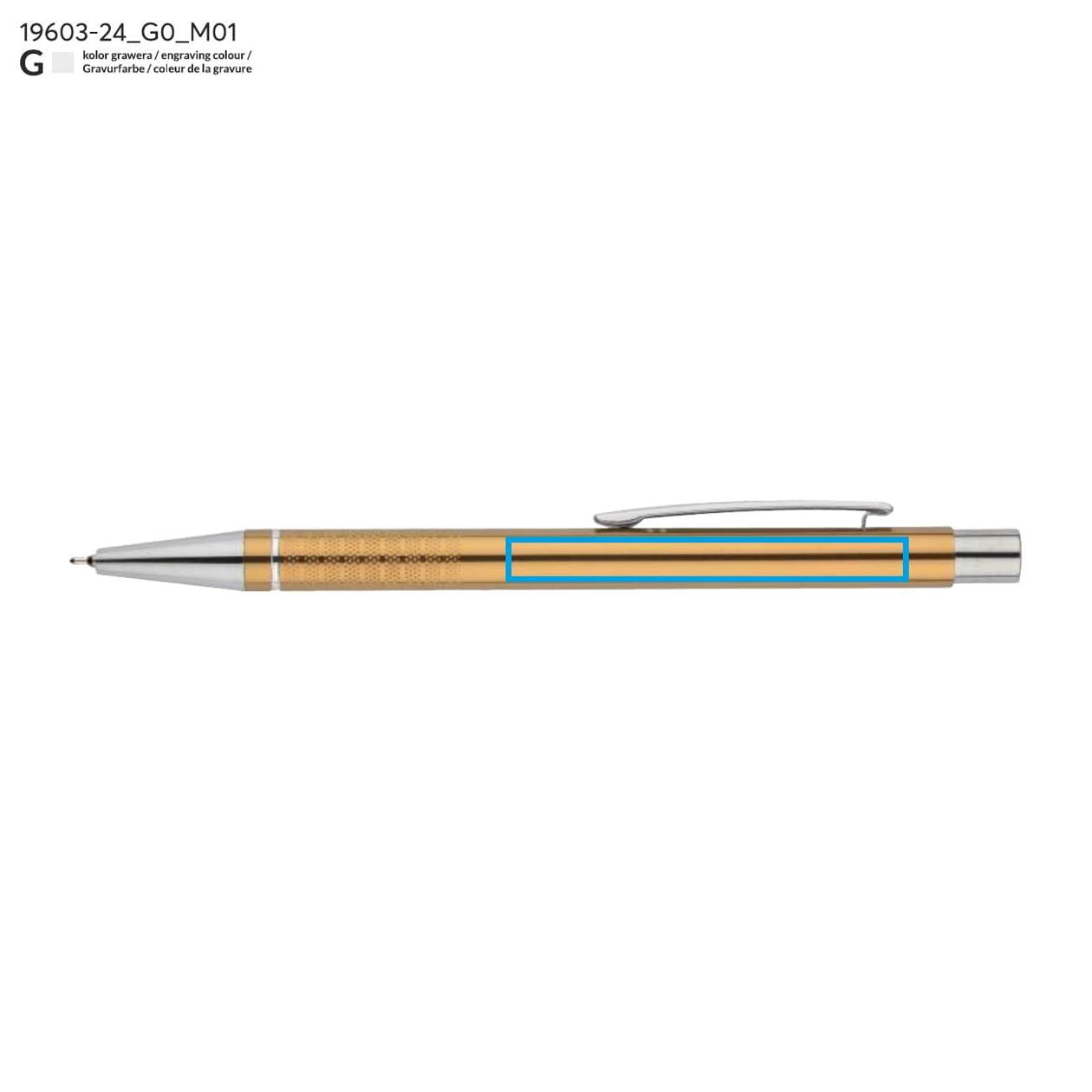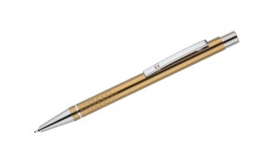 The BONITO pen is an excellent choice for those who value elegance and functionality. Its classic design makes it an ideal accessory for both the office and business meetings. Made from high-quality aluminum, the pen looks extremely stylish thanks to its metallic colors and chrome finishes. The pen's body is adorned with a silver ring at the bottom, adding a unique character, while the slightly rough texture of the stripes ensures a secure grip and comfortable writing.