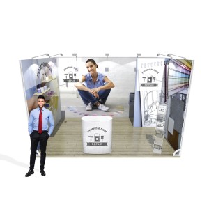 BRUSH 12M2 modular market stand with one -sided print