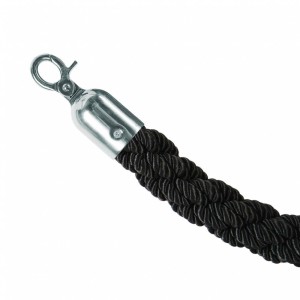 BSR Premium Black Braided Chrome Barrier Rope 150 cm Hotel Barrier Rope for Barrier Posts