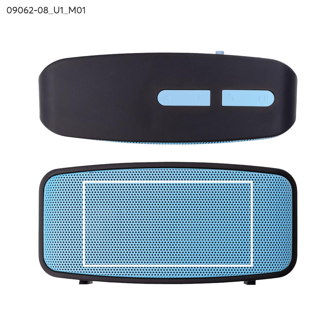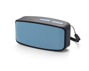 Blue wireless speaker with a logo print h3>