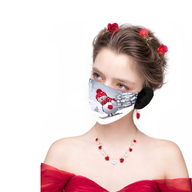 Christmas Protective Mask with Ear Muffs and Pattern for Adults - Snowman II