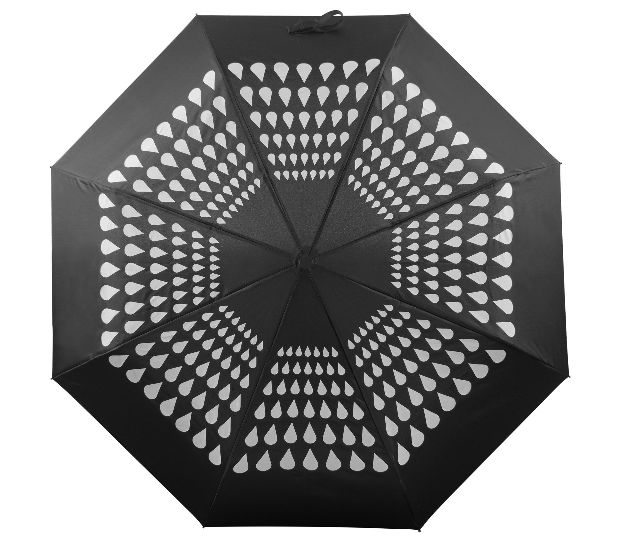 The CROPLA folding manual umbrella is a very striking gadget. It features a print designed by Blue Collection graphic artists that changes color when exposed to water. The umbrella has a metal frame and is made of 190T polyester pongee.