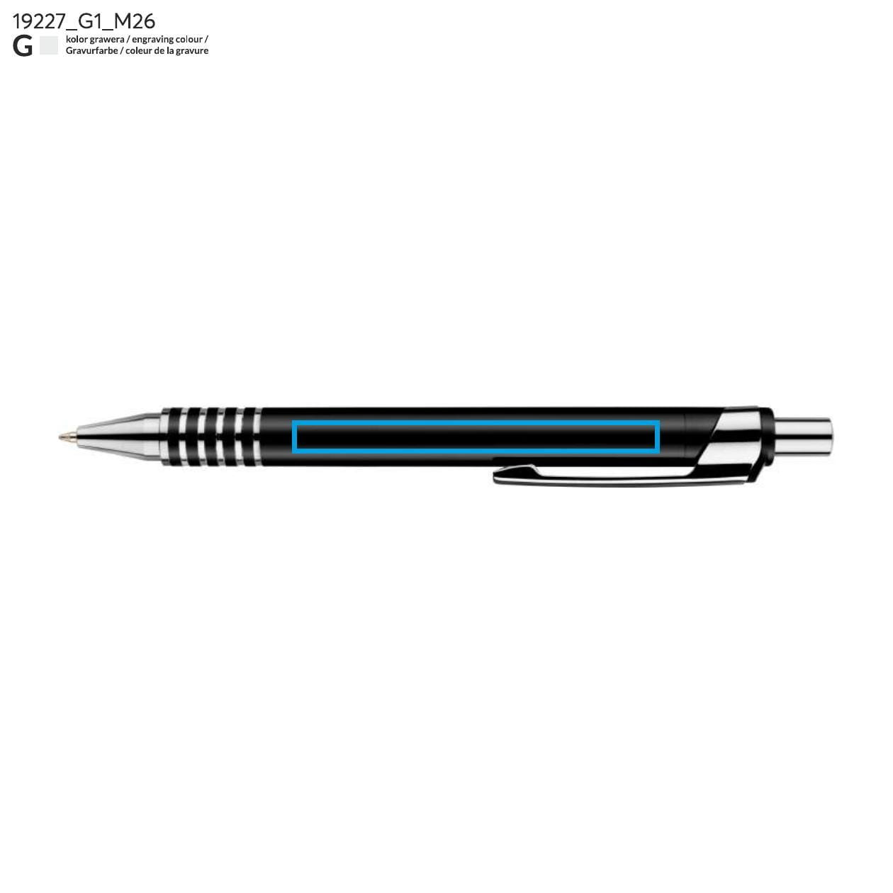 The DAKOTA writing set includes a pen and a mechanical pencil. The entire set is packed in a handy metal case. We engrave the logo both on the packaging and on the set.