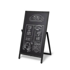 Unlike traditional blackboard easels, the rotating wooden easel offers a unique flip feature. The rotating board allows you to display offers or important messages on both sides. Simply rotate the board to make the additional content visible again to customers.