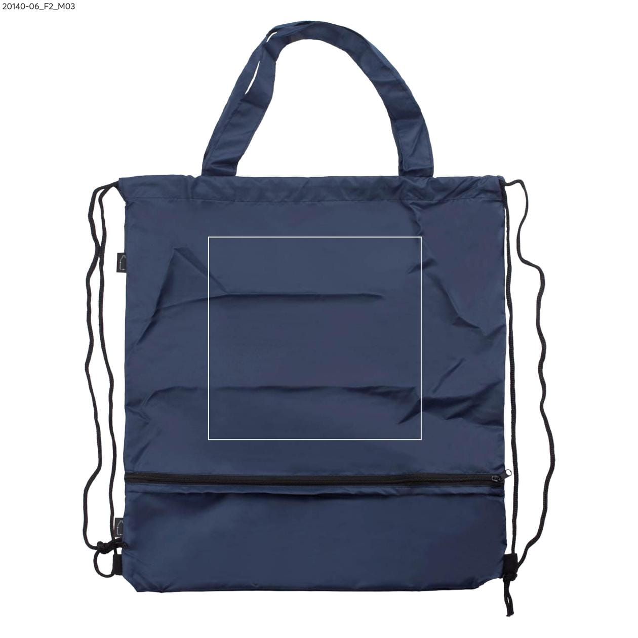 The RAINY drawstring bag with umbrella is a perfect combination of functionality and an eco-friendly approach to everyday shopping. Made from RPET polyester, a material sourced from recycling, this product is an ideal choice for environmentally conscious individuals. Its minimalist design and dark blue color make it a great fit for various styles, both casual and more elegant. Thanks to its versatility, the bag can be used in many ways – from a shopping bag to an everyday backpack.