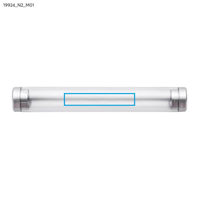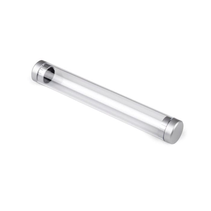 Plastic case in the shape of a tube for one stationary article.Fits pens with a height of 130 to 143 mm.