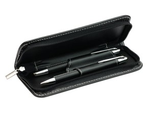 The pen and ballpoint pen are equipped with blue refills, ensuring clear and comfortable writing. Their ergonomic shape makes them fit perfectly in the hand, making them an excellent choice for office work, studying, or daily use. The set is available in an elegant black color, making it ideal as a gift for a loved one or as a present for clients and business partners. There is also the option to engrave a logo on the pen and ballpoint pen, adding personalization and a unique character.