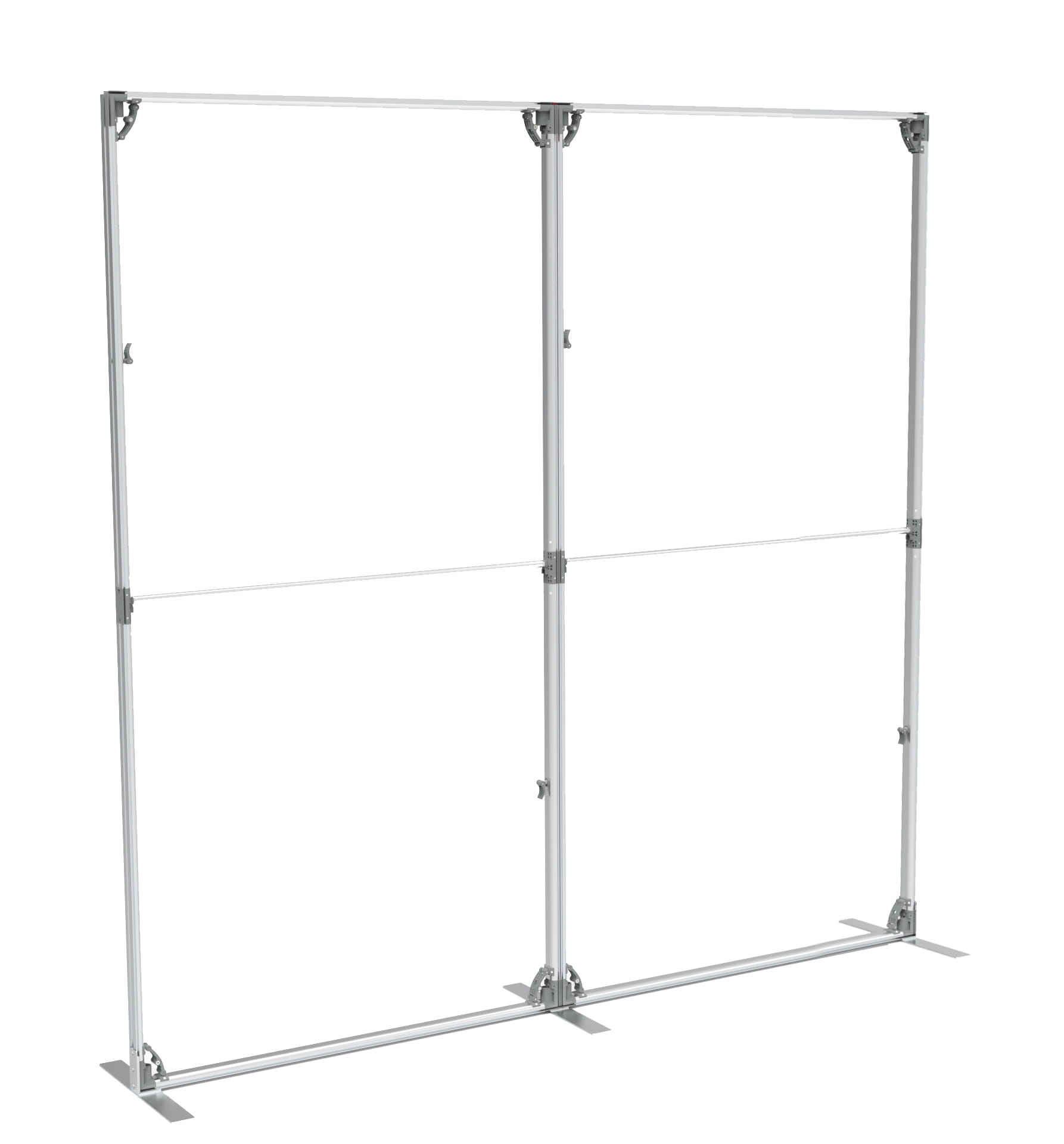 Thanks to the pre-assembled frame, the entire system can be set up and ready for display in a very short time. The efficient 40 mm thick frame, made of lightweight aluminum, is very slim and portable.