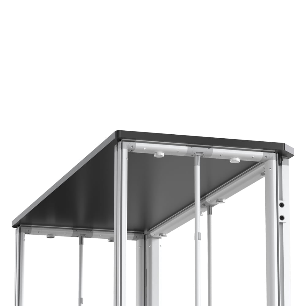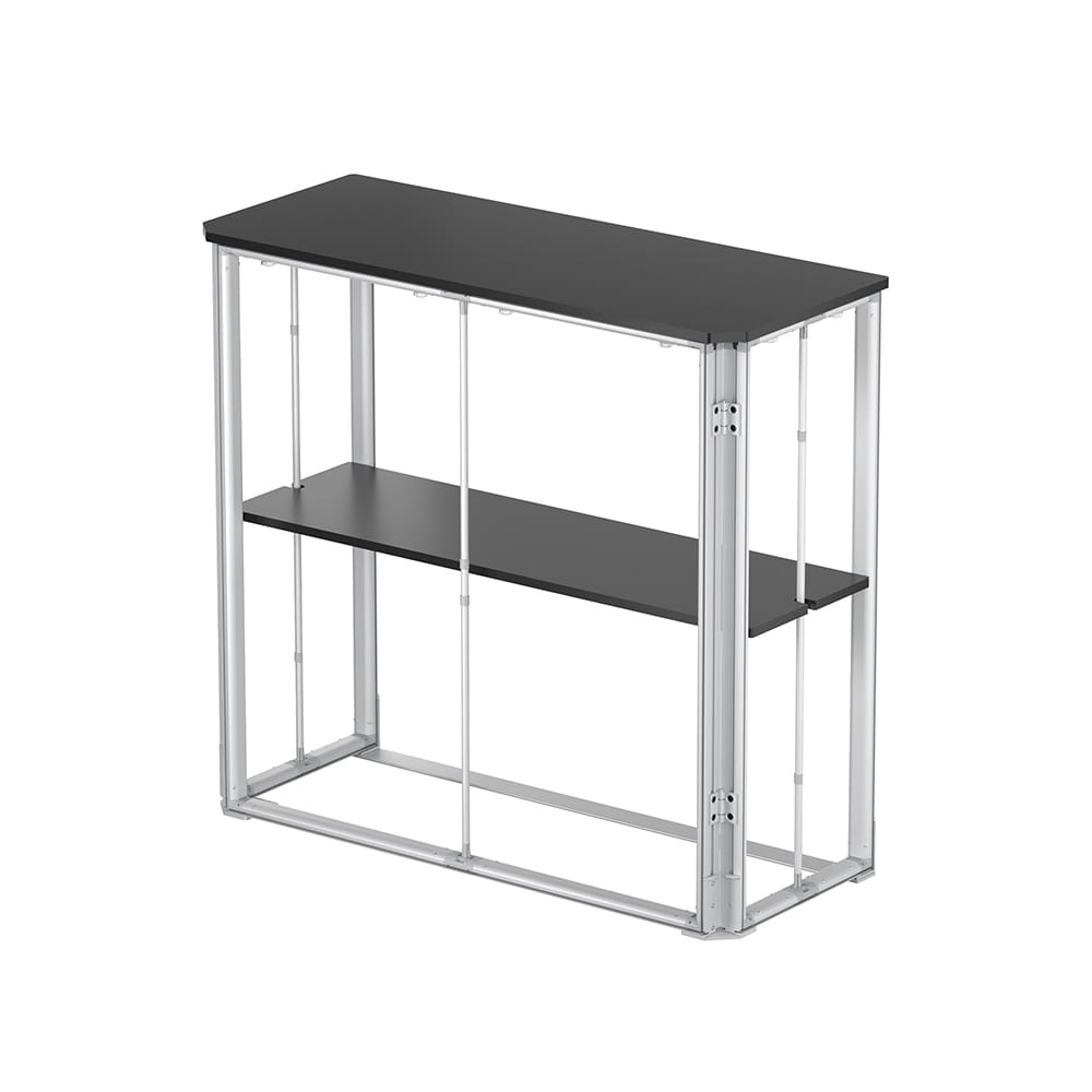 The top made of black MDF is elegant, damage-resistant, and provides an excellent surface for displaying promotional materials.