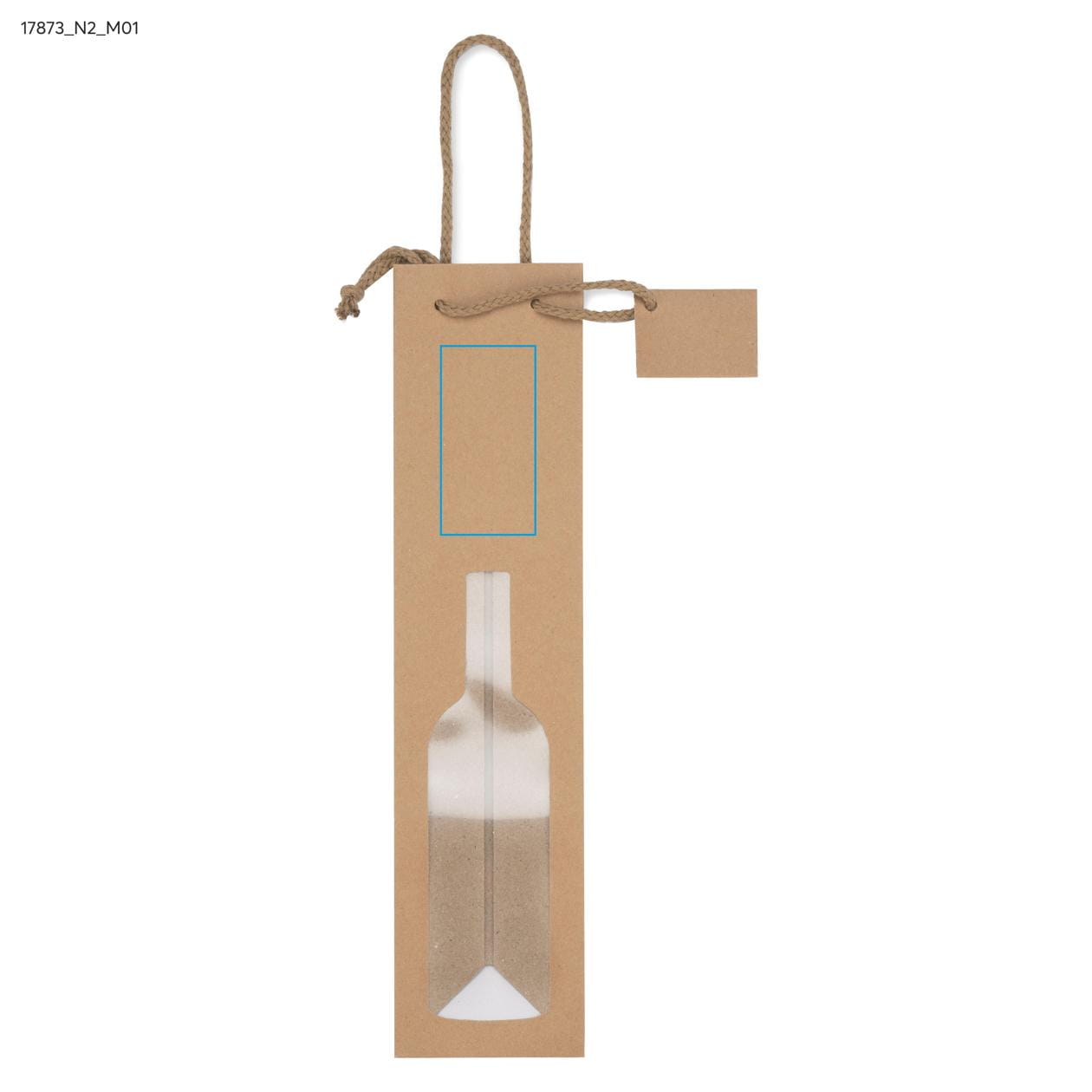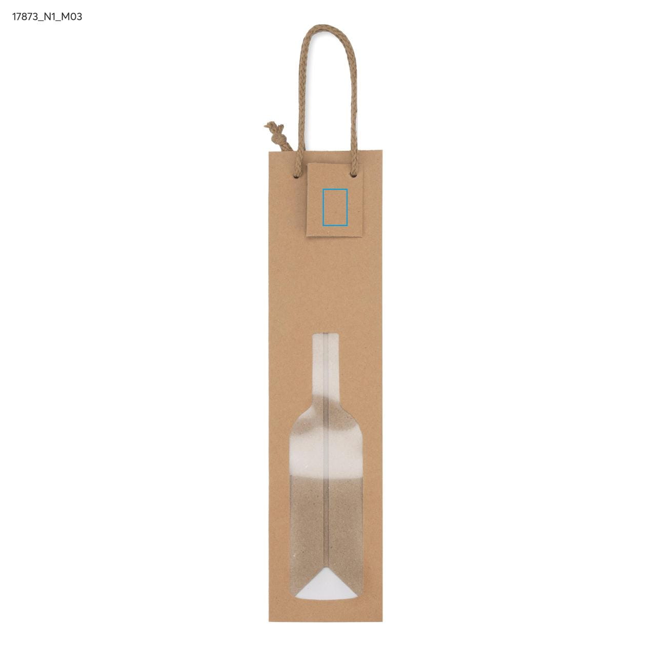 The wine bag with a bottle-shaped window perfectly showcases the product packed inside. The bag is made of paper.