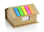 Eco-friendly sticky note holder (370 pcs) shaped like a house. Additionally, self-adhesive markers in five colors (25 markers in each color). The logo will be printed on the roof surface.