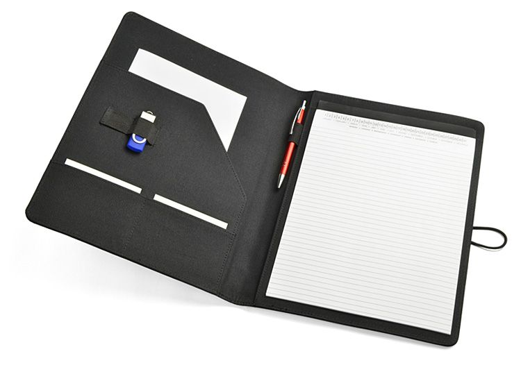 Innovative solutions, such as two USB slots and a dedicated pen holder, make this folder an excellent choice for people who frequently use technology. Additionally, the notebook placed in the pocket can be easily replaced, allowing you to customize the folder to your own needs. This way, even after intensive use, the folder remains functional and aesthetically pleasing. The elastic band closure hooked onto a metal clasp ensures the safety of stored items and additionally adds a modern character to the entire product.