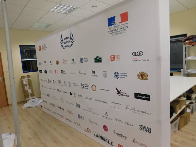 - Fabric tension wall with the possibility to fold it together with the material;
