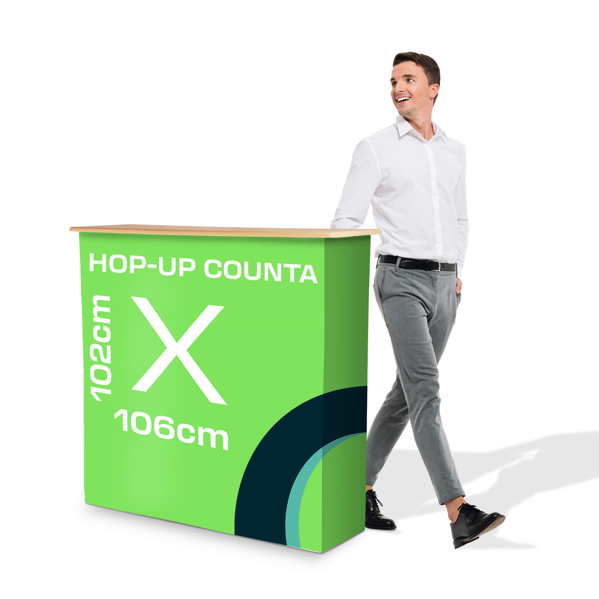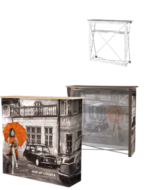 hop-up with its universal shape it goes well with any motif and type of event. it works both at the above-mentioned fairs, but also during the product presentation in shops, gallery,events, company events, at conferences.It is a carrier that reaches the recipients with great effectiveness with the content printed on it, thanks to its size and simple shape. In addition - it has an inner shelf.