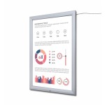 The display case frame is made of high-quality silver-colored aluminum, resistant to harsh weather conditions. The sturdy opening and closing mechanism allows you to easily and quickly update the contents inside the display case. The integrated LED lighting perfectly illuminates the displayed content, even after dark.