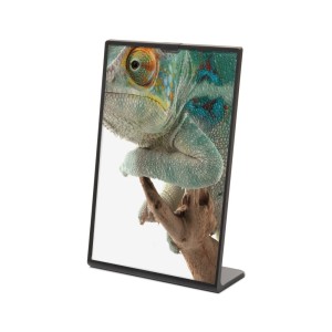 Very practical holder for menu or other information in the form of a poster to be placed on a table. This display has a simple and proven reliable construction, making it easy to use and durable. Content changes are made by removing a special clip and then reattaching it after updating the information. The model with an L-shaped base allows for single-sided content presentation.
