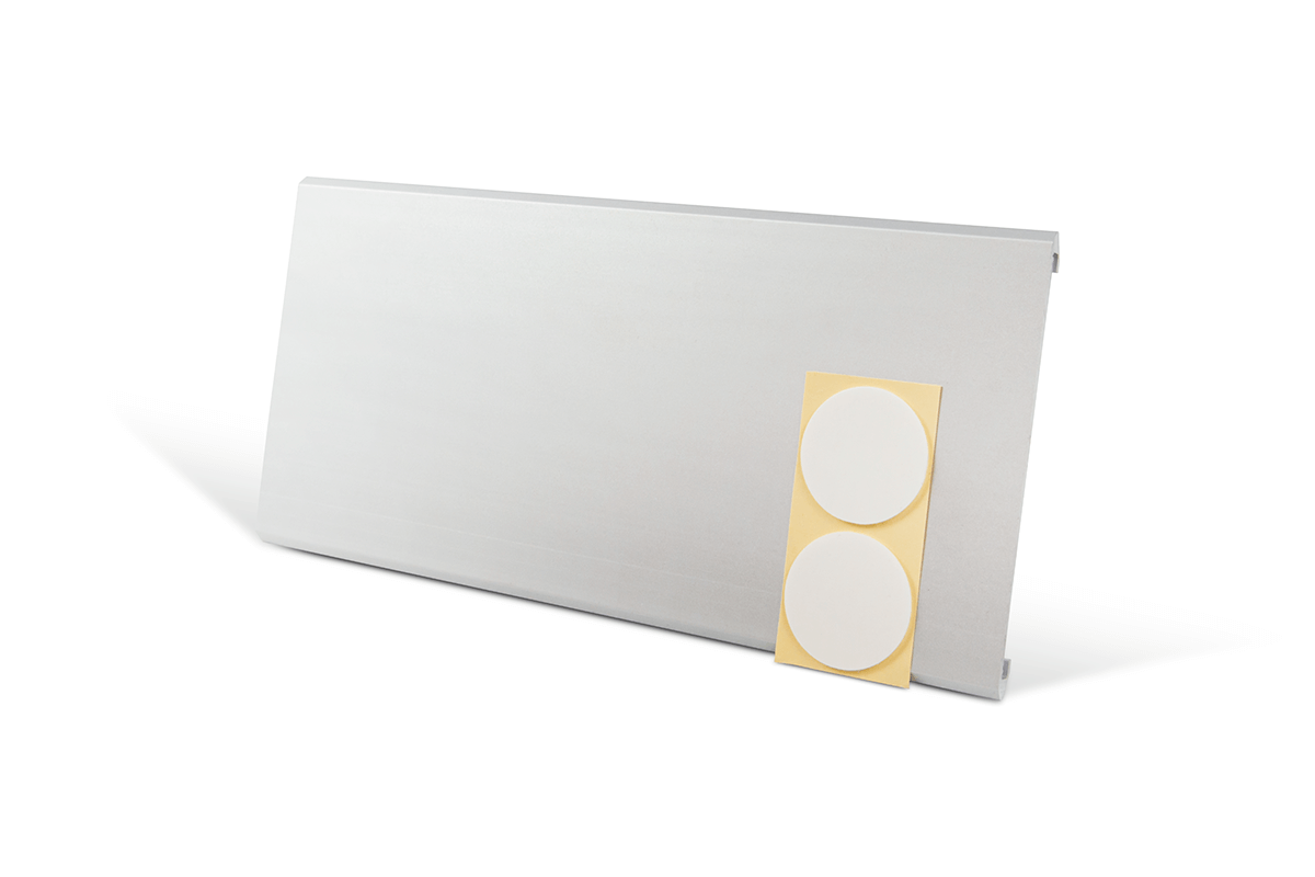 The plate is easily mounted on the door using the double-sided adhesive tapes included in the set.