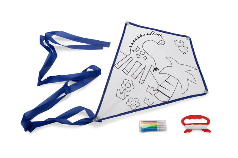 The kite for self-assembly will provide a great dose of fun for the whole family. It is decorated with a print that can be colored according to your own idea using the 4 included markers. The set includes metal rods, the kite, a tail, and a 30-meter long string wound on a handle.