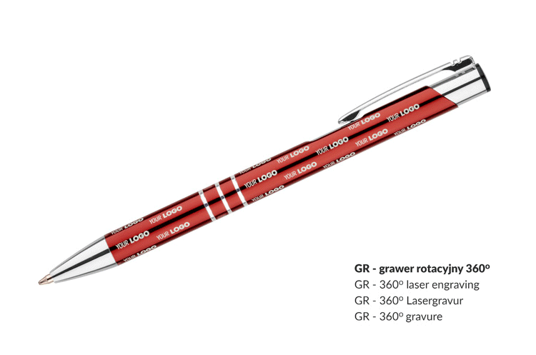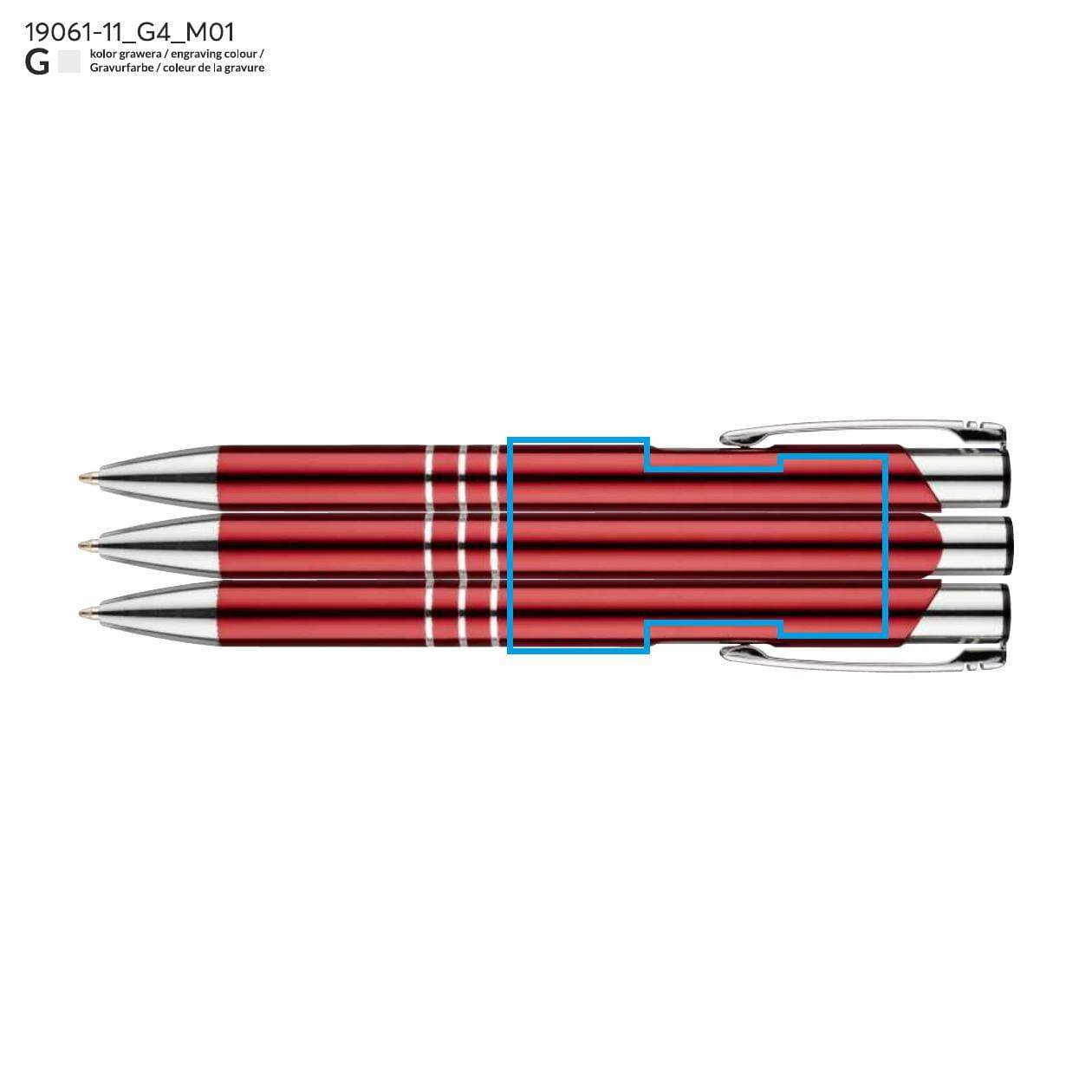 This retractable pen is equipped with 3 elegant rings that highlight its modern design. The blue refill makes writing pleasant and smooth, and the possibility of engraving a logo on the pen's surface makes it an ideal choice for a gift or promotional gadget. The KALIPSO pen is a perfect combination of aesthetics and practicality that will surely satisfy every user.