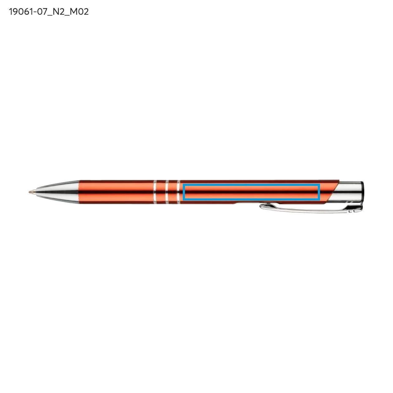 The pen is enhanced with three striking rings that emphasize its elegant appearance and add character. The orange color makes it stand out among other office accessories, while also attracting attention and can become an excellent element of your company's visual identity. The possibility to engrave a logo on the pen's surface is a great way to promote the brand and its values, which will accompany the user daily.