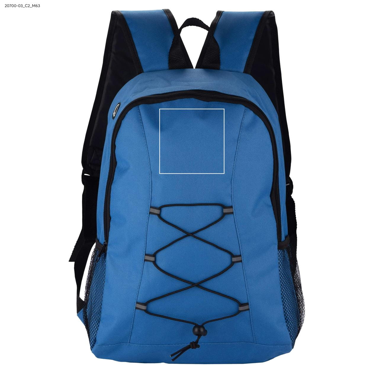 The backpack is designed with user comfort in mind. It has one spacious main compartment secured with a sturdy zipper, ensuring the safety of stored items. Additionally, the backpack is equipped with two practical mesh side pockets, ideal for storing bottles or small accessories. Black elastic bands on the outside of the backpack serve a practical function – you can place a small blanket or a light jacket in them, making travel even more comfortable.