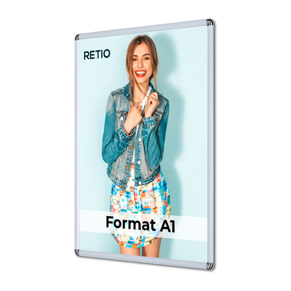 KRAST Snap Frame A1 (59.4 x 84.1 cm) Silver Aluminum with Rounded Corner Poster Frame OWZ Wall-Mounted for Posters and Photos Profile 25 mm