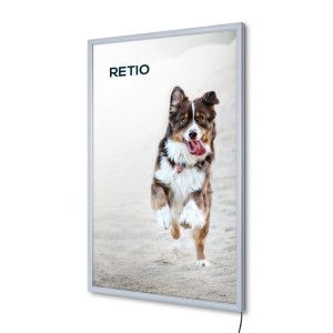 Slim illuminated poster frame equipped with an integrated LED panel that provides uniform illumination of the poster, making it clearly visible at night or during the winter months, and in case of insufficient lighting.