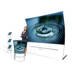 - fold-out rack for A4 acrylic - exhibition textile oval with a print -