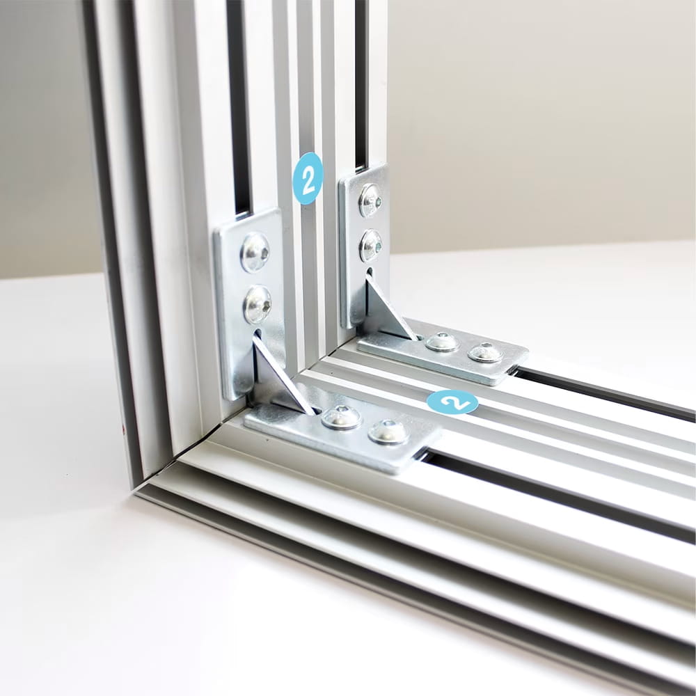 Frame mounting: Freestanding frame with flat stabilizing feet (included), locks tightened with Allen key ;