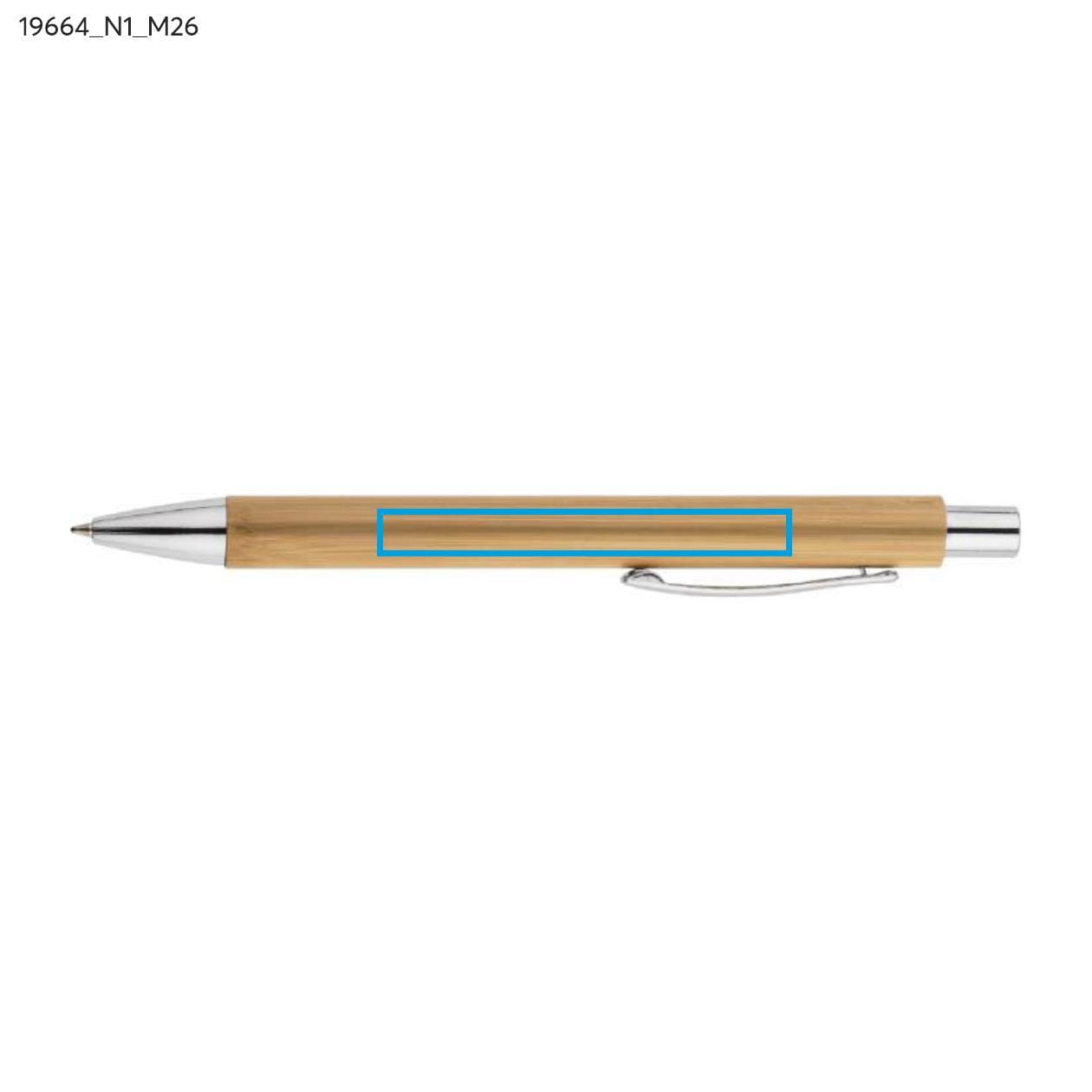 The MAMBOO writing set consists of a pen and a mechanical pencil packed in a brown, eco-friendly cardboard box. The pen and pencil bodies are made of natural bamboo. Chrome finishes give it an elegant look. The pen refill is blue, and the mechanical pencil has a thickness of 0.7 mm.