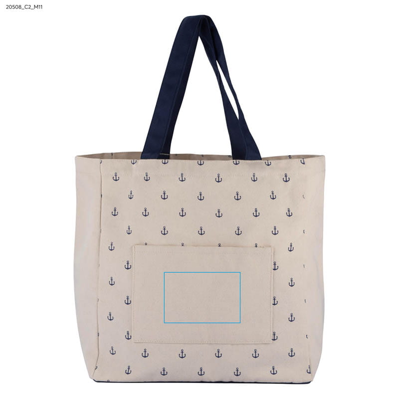 The spacious single-compartment MARINE bag is useful both during beach vacations and in the city. It features an attractive anchor print. Made from durable 220 g/m2 cotton. The bag has an external side pocket and long handles for shoulder carrying.