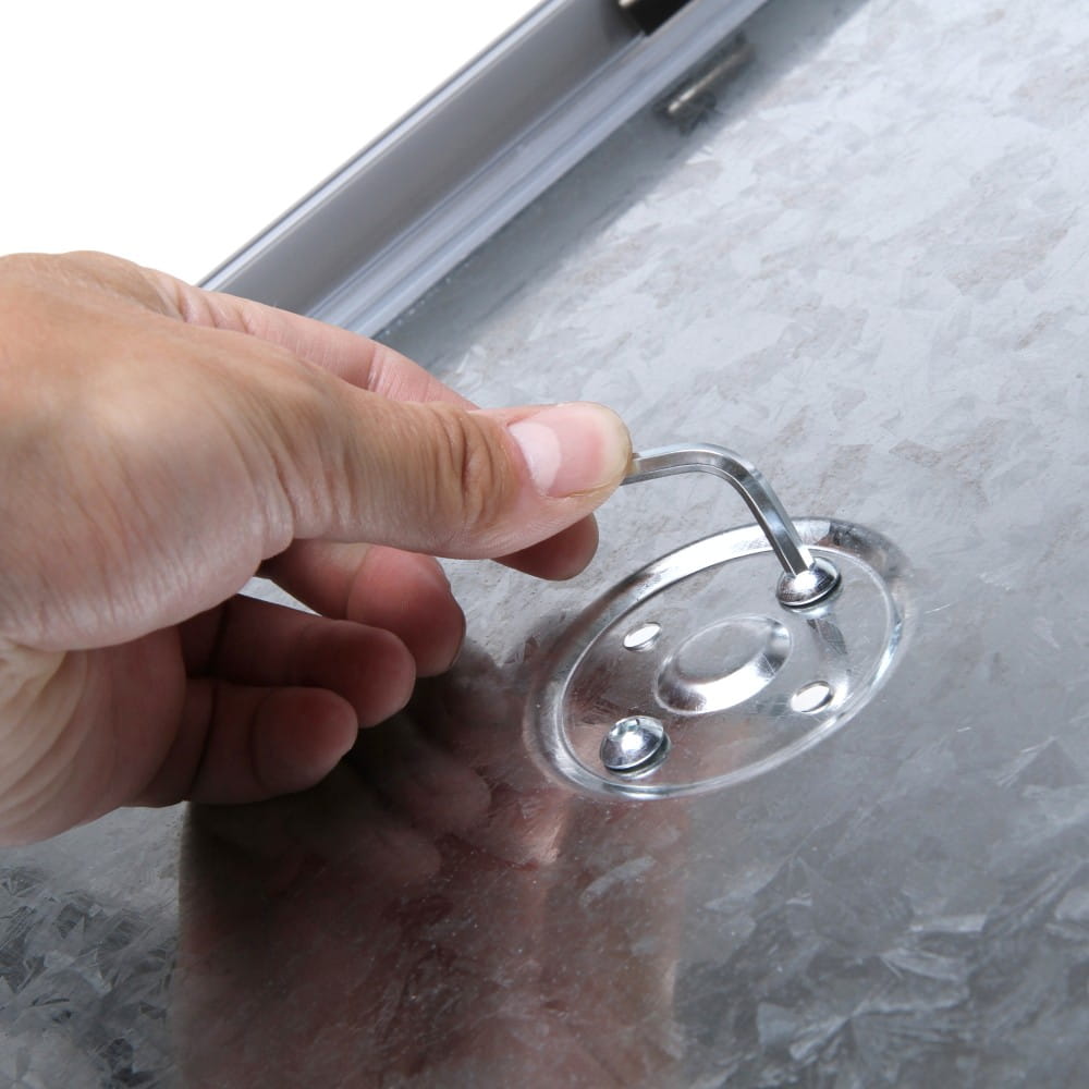Our menu stand is made of aluminum, which provides lightness and durability, and it is mounted on a very stable base equipped with rubber feet that prevent the stand from sliding and thus protect the floor from scratches. The menu stand has been manufactured with the utmost precision, which is immediately noticeable upon unpacking; it is a really solid product that will serve for many years.