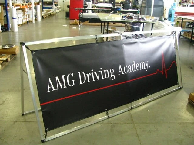2) The advertisement is to be placed in the middle of the green square or in another non -standard place? - Choose a stretch banner for a frame that you will set up in any place.Frame , but it has a two -sided presentation. "A" shape frame - looking from the side side.System finish (frame) - 25 millimeter, square, aluminum pipe, reinforced with artificial plastics.The system mounted to the frame using flexible loops.