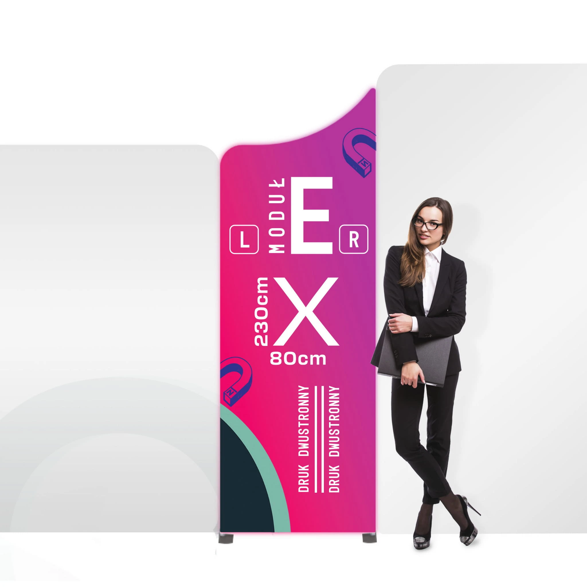 The print is made using sublimation technique on high-quality Display Stretch 180 g material, which features excellent color saturation. In this case, there are two layers of material joined by a zipper, which allows perfect tensioning of the graphic on the frame once stretched. The zipper is hidden under a cover, so it does not disrupt the booth's aesthetics.