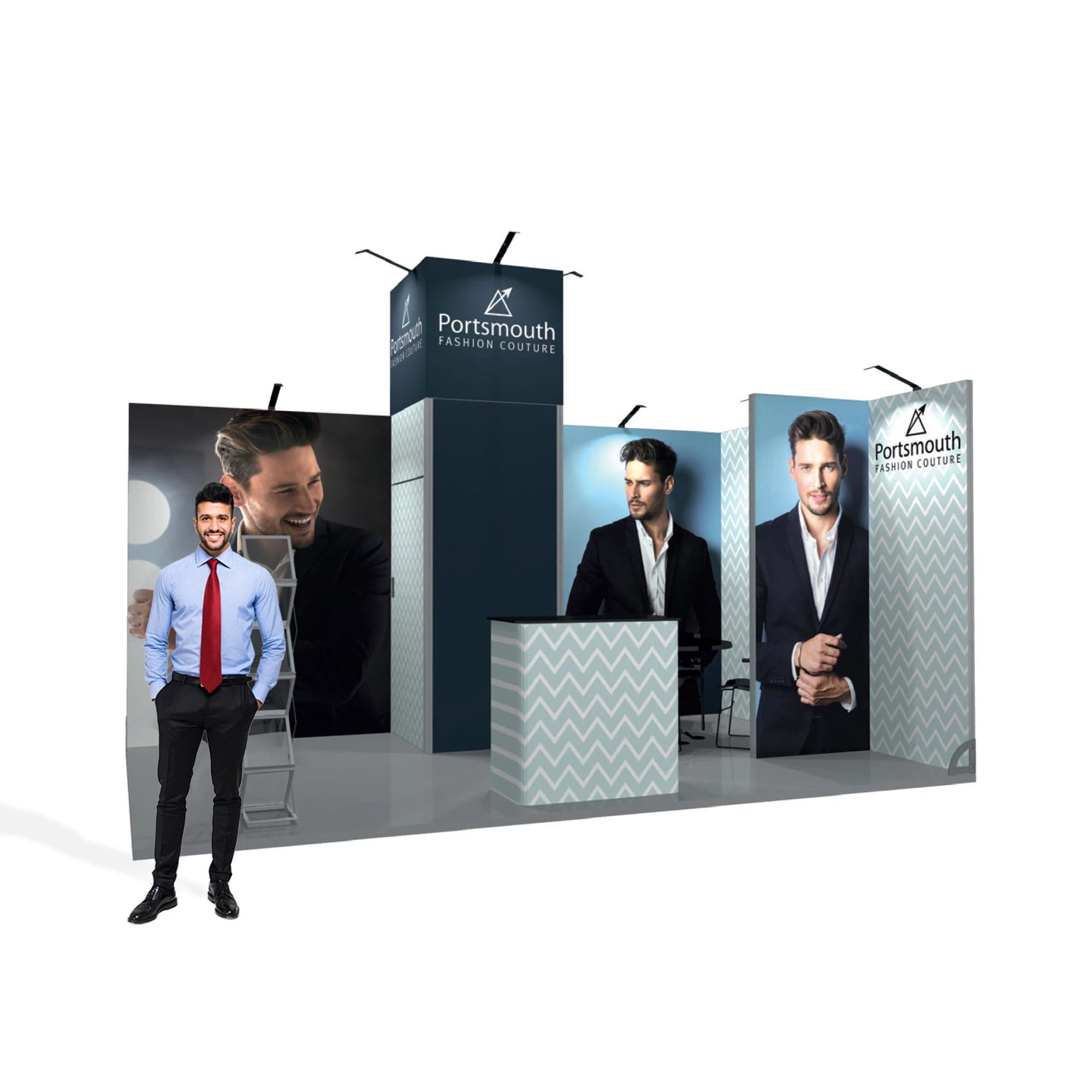 for a ready -made structure, just attach our high quality, flexible textile material Display stretch 180 g. We trim it with silicone, thanks to which it is easy to push it into the edges of the Vector construction, which perfectly tightens the print.An additional, separating the wall forming budget, partially discovered facilities. This reduces the costs associated with the door module, and such space can be successfully used, for example, as a place to brew coffee. The size of the facilities is 1 x 1 m.