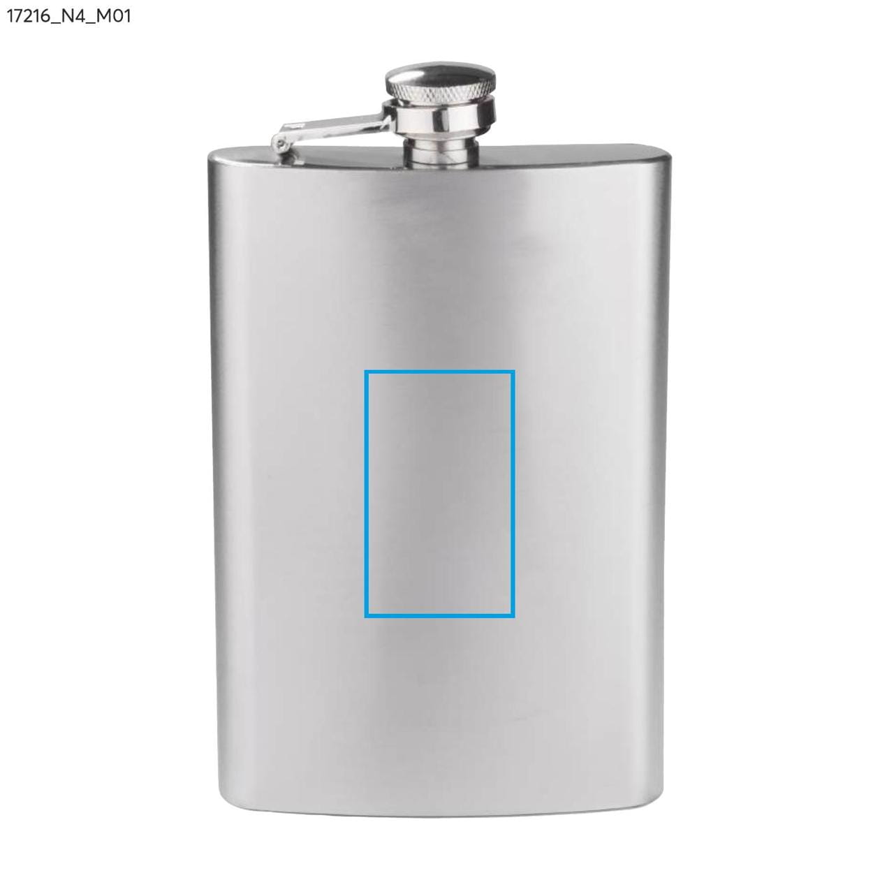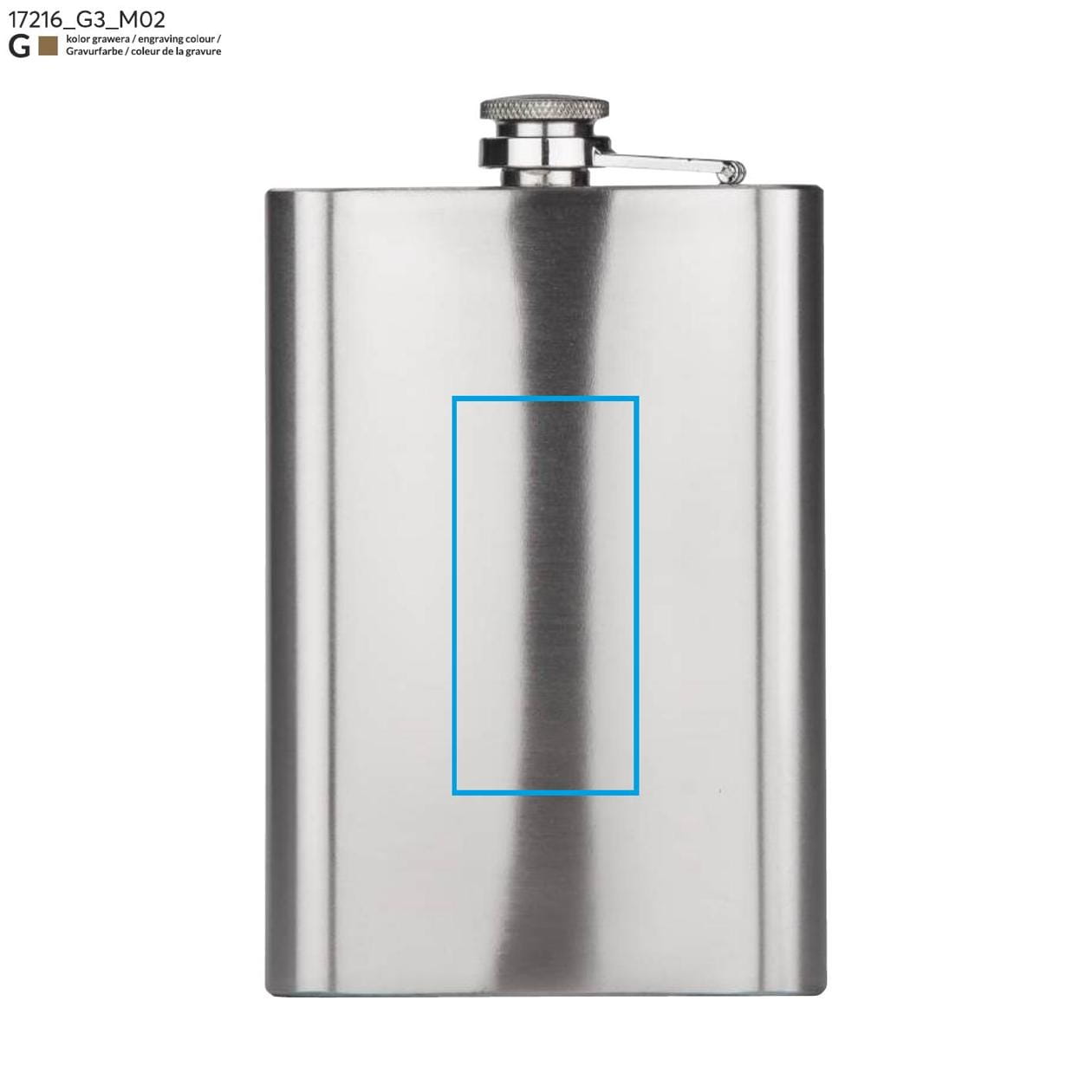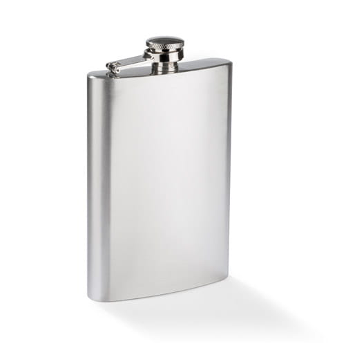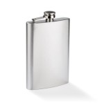 Stainless steel hip flask with a capacity of 240 ml, featuring a secure closure. The logo is engraved on the surface of the flask using laser engraving.