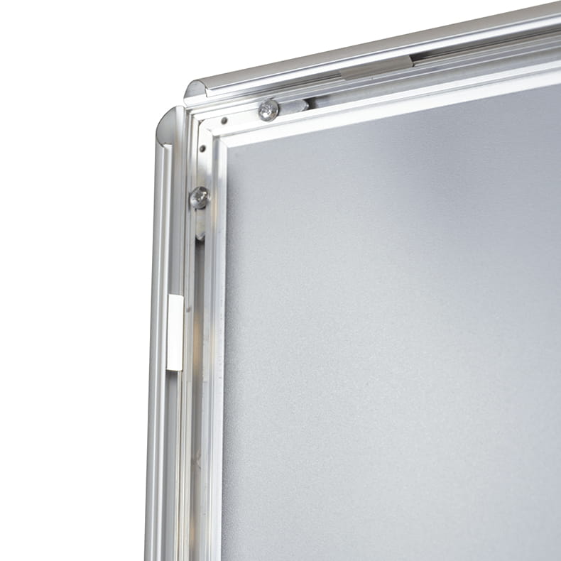 The main feature of the frame is its durability, resistance to corrosion, and lightweight, while its aesthetic appearance highlights the poster presented to potential customers.